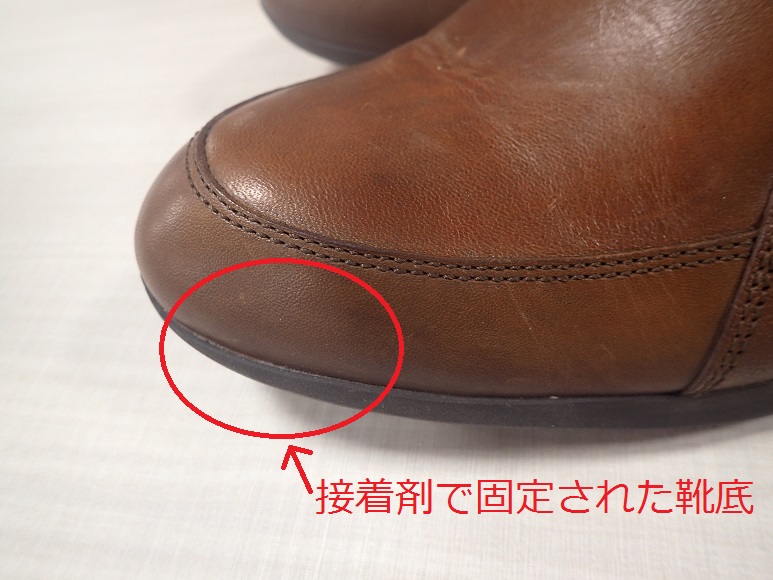 靴底と本体が「接着剤」で固定されているのがお分かりになるかと思います。