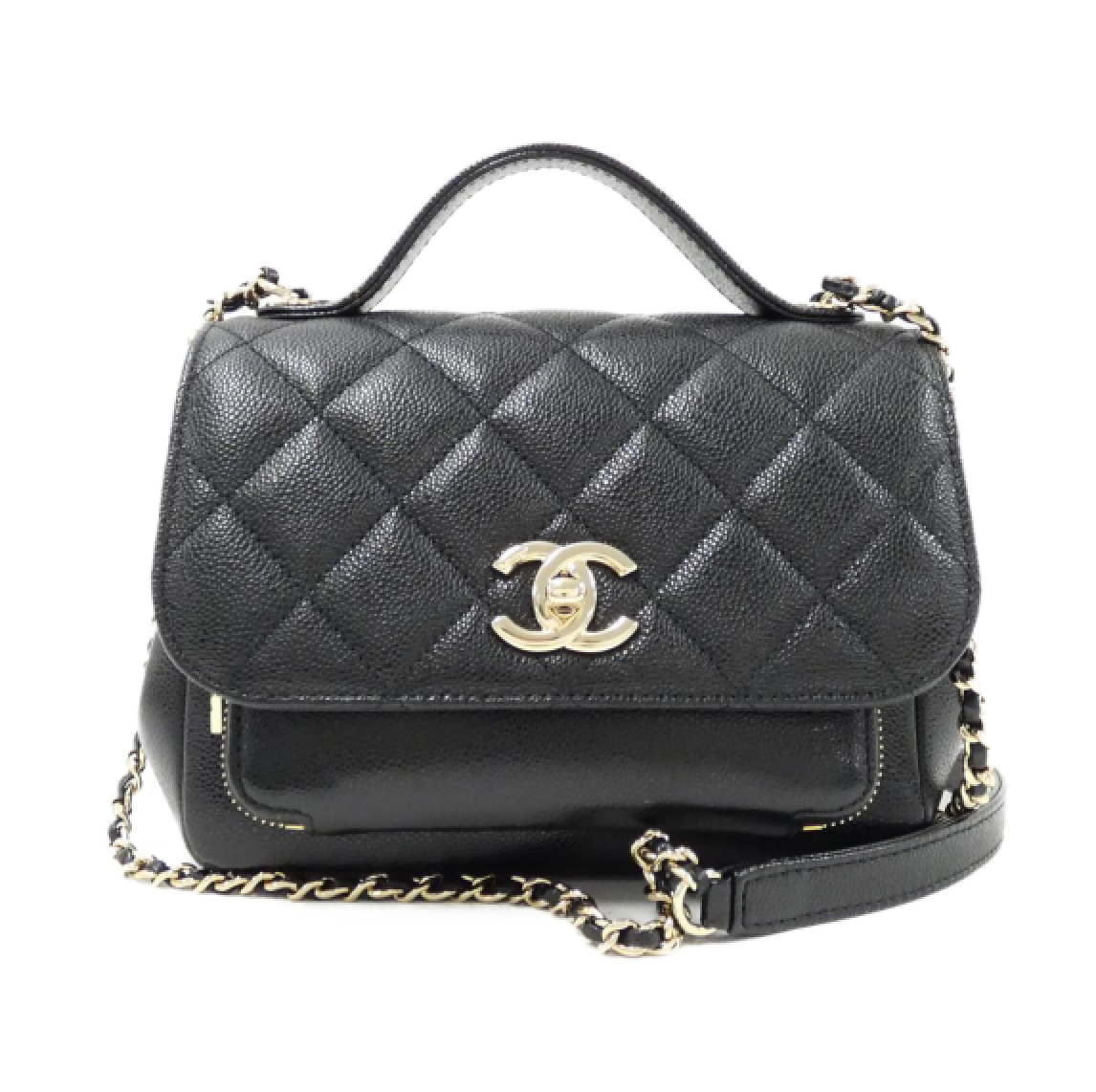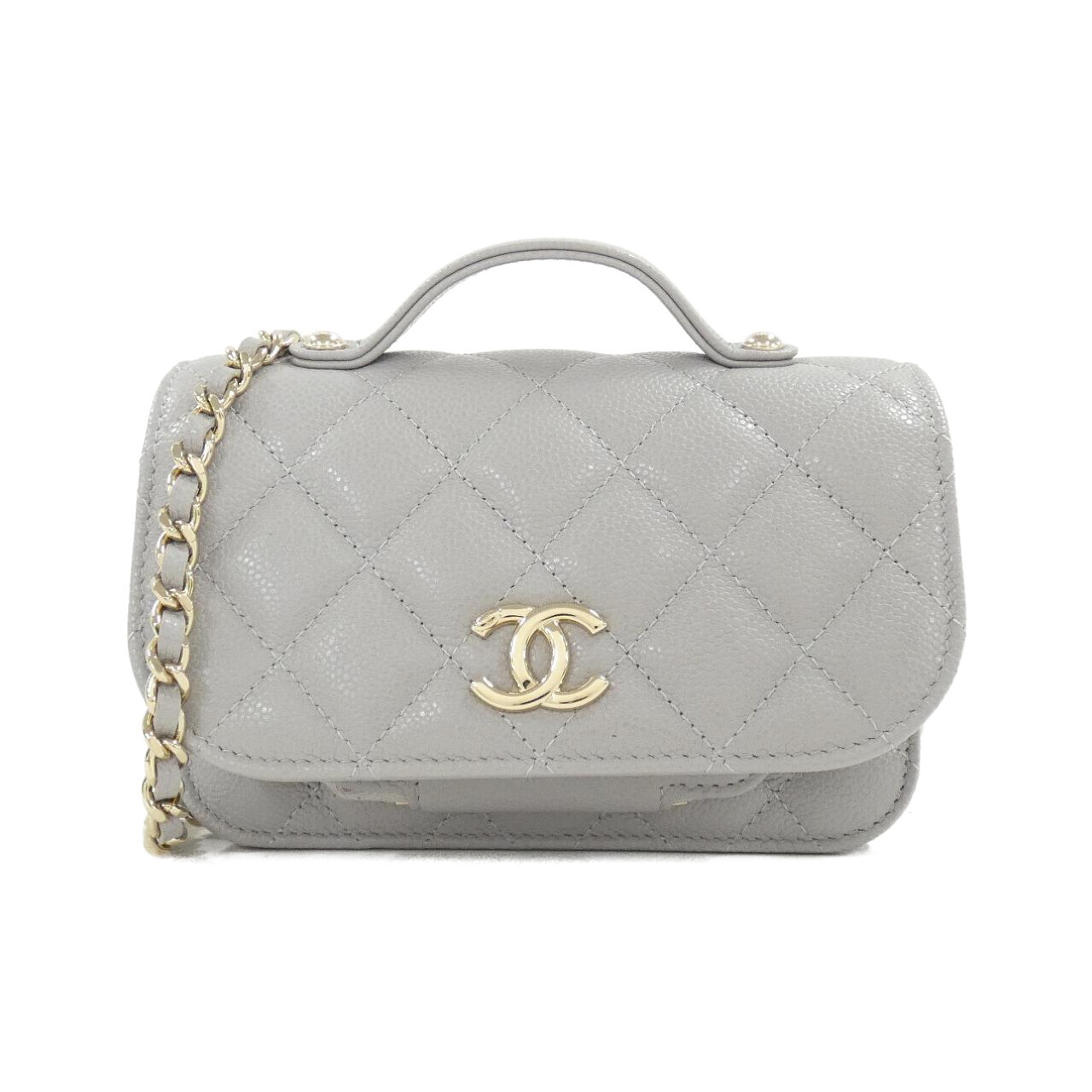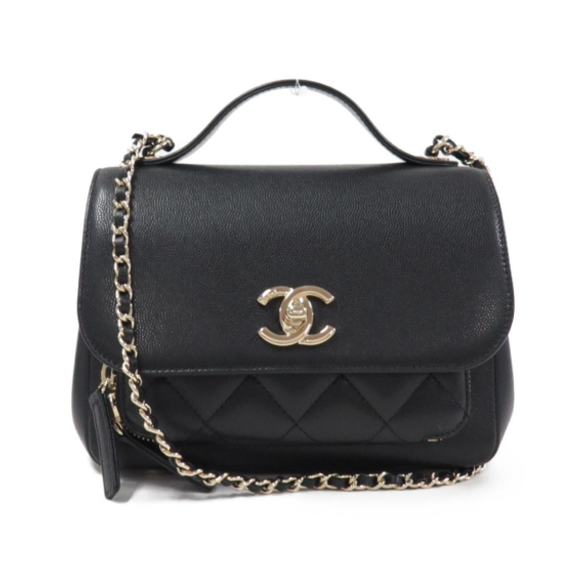 トップにハンドルがついたチェーンバッグというデザインですが、ハンドルの有無とCHANELプレートによって印象は大きく異なります。