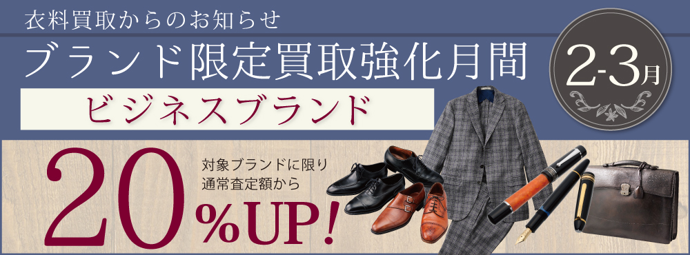 2月・3月は、下記ビジネスブランドの衣料品とブランド筆記具を通常査定価格から20%UPでお買取り!