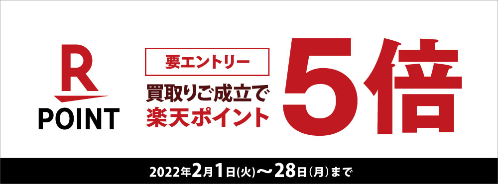 キャンペーン期間中、エントリーをし、楽天ポイントカードまたはアプリをご呈示のうえ買取成立で、付与される楽天ポイントが5倍。