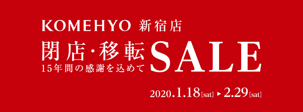KOMEHYO新宿店では、店舗移転に伴い、1月18日(土)~2月29日(土)の期間「閉店・移転セール」を開催いたします。
