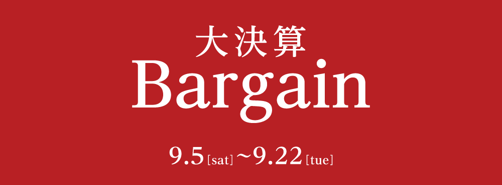 【全店】9月5日(土)~9月22日(火)『大決算Bargain』開催のお知らせ