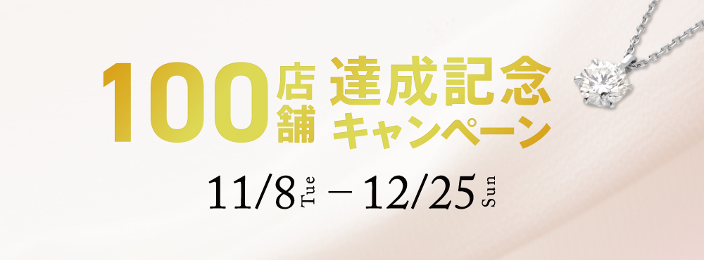 KOMEHYO100店舗達成を記念して、期間中にご購入(税込5,500円以上)と買取りをご利用いただいたお客さまの中から抽選で10名様にダイヤモンドネックレスをプレゼント