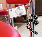 近頃よく見かける変な三脚。米国から上陸したゴリラポッドです。この三脚は足が自由に曲がるようになっていて、写真のように手すりやポールに抱きつくことも出来るので、階段など三脚では使いにくかった場所でも簡単に固定できます。カメラの脱着もワンタッチ式で何よりもプラスティック製で軽いので、持ち歩きが大変楽です。コンパクトカメラ用と、デジタル一眼レフ用があります。