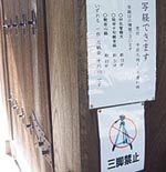 金閣寺に着いてみると入り口にはなにやら看板が・・・そこには「カメラ三脚禁止」の文字。え〜!と思いつつ中に入るとさらに「一脚禁止」の文字も・・・ヘ(´o`)ヘ
