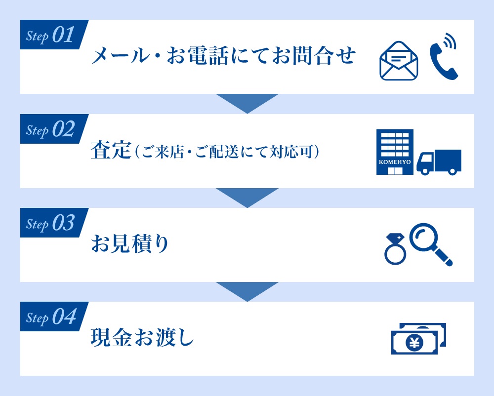 - ・担当者よりお電話、メールにてご連絡をさせていただきます。その際に買取方法の詳細をご案内いたします。