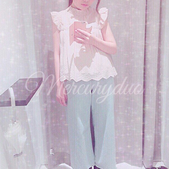 高橋さん「足元も見たかった>_< 白のトップスがとってもかわいいなと思いました!! 少しハイネックになってる所も今年っぽくてGOOD!!! ボトムの水色もとってもかわいくていいです♡」