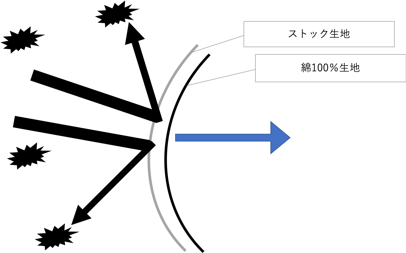 - 表地にストック生地、裏地(顔に直接触れる部分)に、綿100%の新品生地の2層で構成されています。