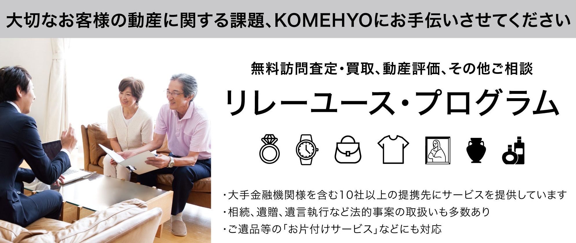 大切なお客様の動産に関する課題はKOMEHYOの「リレーユース・プログラム」をご利用ください。