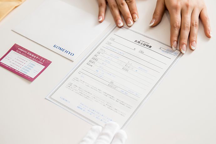 購入証明書はお品物の保証や修理の際にも必要な書類です。大切にお持ちください。