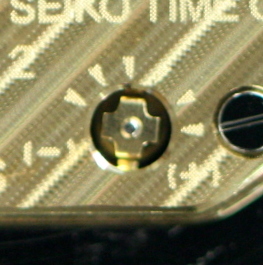 その「精度へのこだわり」の実例が、9Fキャリバーにしかない「緩急スイッチ」です。機械式で言う緩急針の役割を持ち、誤差の傾向から「+」「−」で遅れと進みを調整することができるのです。つまり、そもそも精度が高いのに、さらに精度が追い込めるのが、9Fキャリバーです。