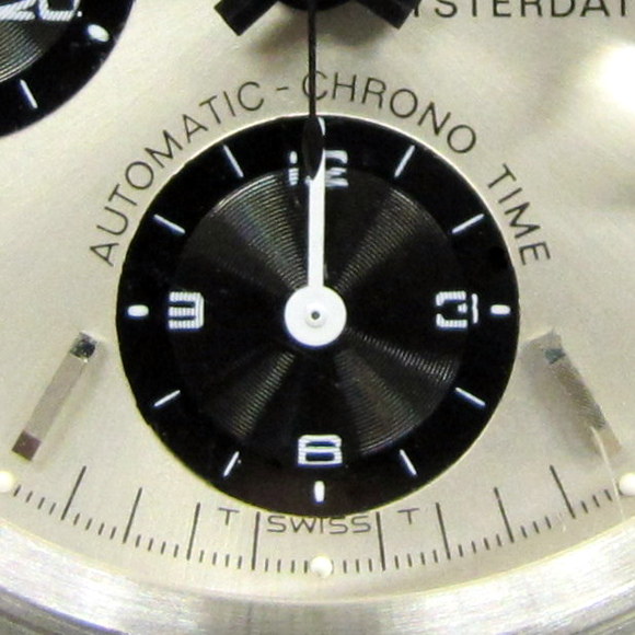 初期のクロノタイム9420/0、9421/0、9430/0は、モンテカルロ文字盤のようなカラフルな文字盤をもつものが存在します。なぜかこの世代のカラフルな文字盤は「エキゾチック文字盤」と呼ばれます。そして、この世代ではカラフルでない、まさにロレックスのデイトナのような“正統派デザイン”の文字盤も登場します。