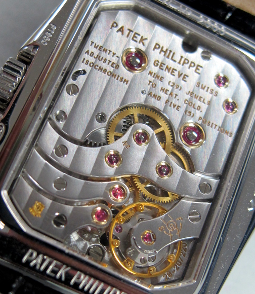 特にパテックフィリップは、かつてCal.9-90という名作の角型ムーブメントを作っていたことでも有名です。そのイメージがあるがゆえに、多くのファンはパテックフィリップの角型ムーブメントに“美しさ”を期待します。きっとパテックフィリップは、そのファンの期待を感じながらCal.28-20/220を作ったのだと思います。