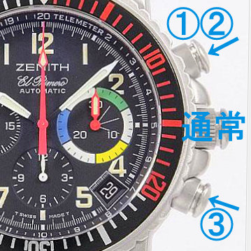 つまりゼニスは、この傑作と言われるエルプリメロに、“付加機能”を加えたのです。その機能は「フライバック機能」です。これは、クロノグラフの連続操作を容易にする機能で、具体的には、クロノグラフのストップ操作と次のスタート操作を省略できる機能です。「連続の時間計測をスムーズにできる機能」と言い換えても良いでしょう。下で簡単に説明します。