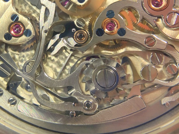 そして、「彫刻されたテンプ受け」や「巻上げヒゲ」だけでなく、「プレシジョンジャンピングミニッツカウンター」も搭載しています。私から見ても、十分、パテックフィリップを超えた印象です。