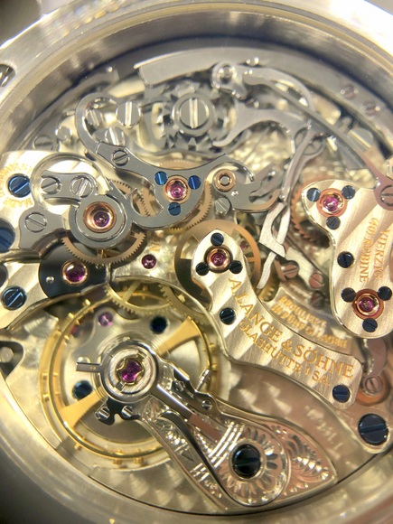 再興したばかりの“後発ブランド”として存在を示す必要のあるランゲ&ゾーネは、きっと、「このパテックフィリップのクロノグラフムーブメントより上のクオリティを目指す」と、感覚的に思ったはずです。そしてもちろん、超えるためには、“同じ土俵”である必要があります。
