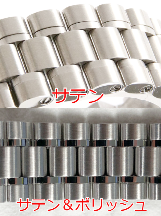 まず、真っ先に違いを感じる点は、ブレスレットのデザインでしょう。部品の一つ一つが小さくなり、一駒一駒が小さくなりました。また、ブレスレットのテーパーの角度が深くなり、全体の印象としてブレスレット幅が細くなっています。さらに、クラスプのデザインも変更になっており、ストライプデザインが入った留め具になりました。
