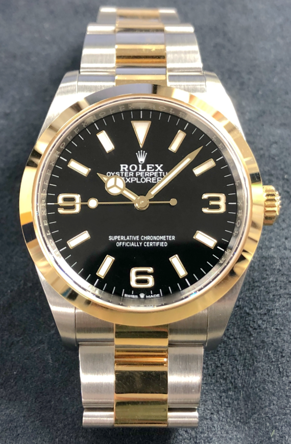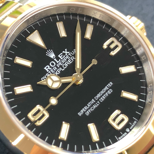 このモデルは、2021年の新作としてロレックスが発表するやいなや、大きな話題になりました。なぜなら、「これまで、ステンレスだけだったエクスプローラー1に、素材違いの“ランクアップモデル”が登場したから」です。