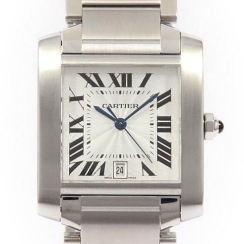 カルティエのロングセラーモデルです。“戦車の轍”がモチーフとなっています。1917年、戦車が通った後のキャタピラの跡を見て、ルイ・カルティエはこのデザインを思いついたそうです。“戦車”がもつイメージはどちらかというと“剛”のイメージですが、タンクは角型で品のあるデザインに仕上がっています。そのため、男性用、女性用のどちらに仕上げても違和感がなく、様々な場面で活躍する人気モデルです。事実、当社の販売するカルティエウォッチの中でも一二を争う人気を誇っています。